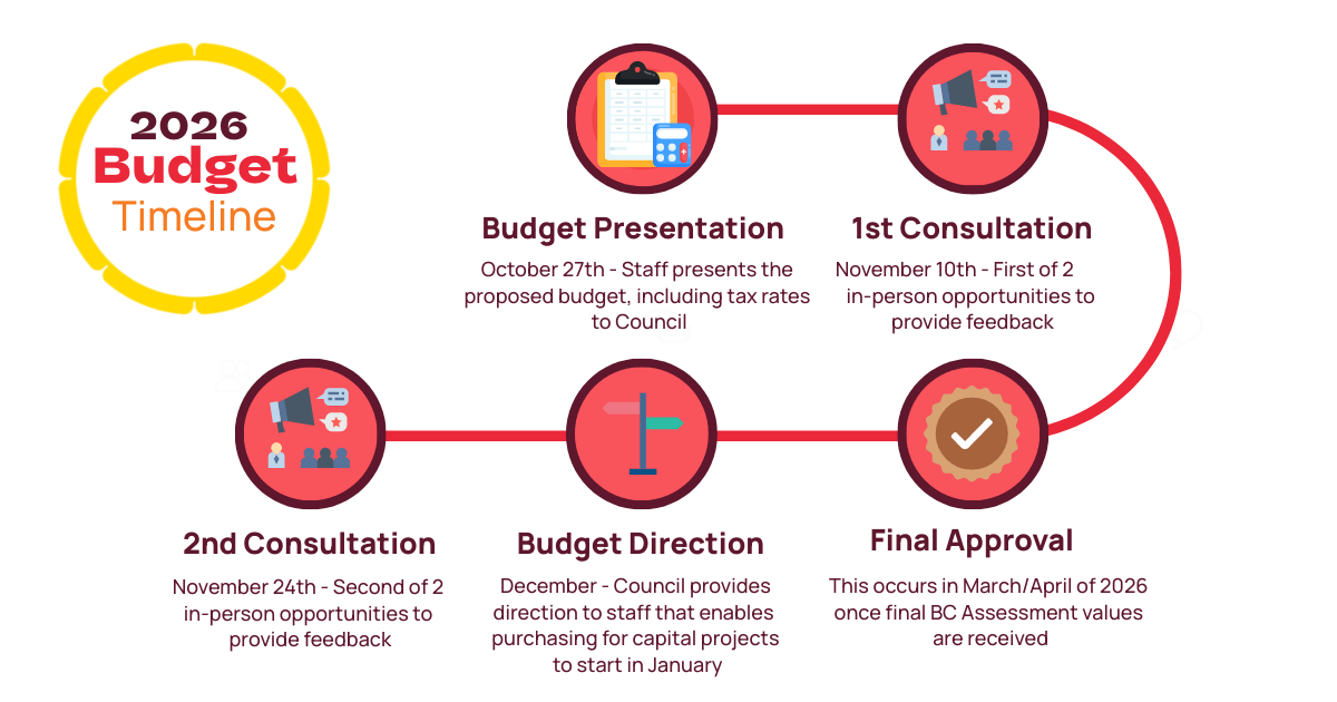 Prince Rupert City Council will receive the 2026 Proposed Budget at the Regular Council meeting of October 27th, where the full budget/document will be reviewed with Council and released to the public, alongside our budget simulation software where we collect direct input on public spending. That software will be open until November 14th.